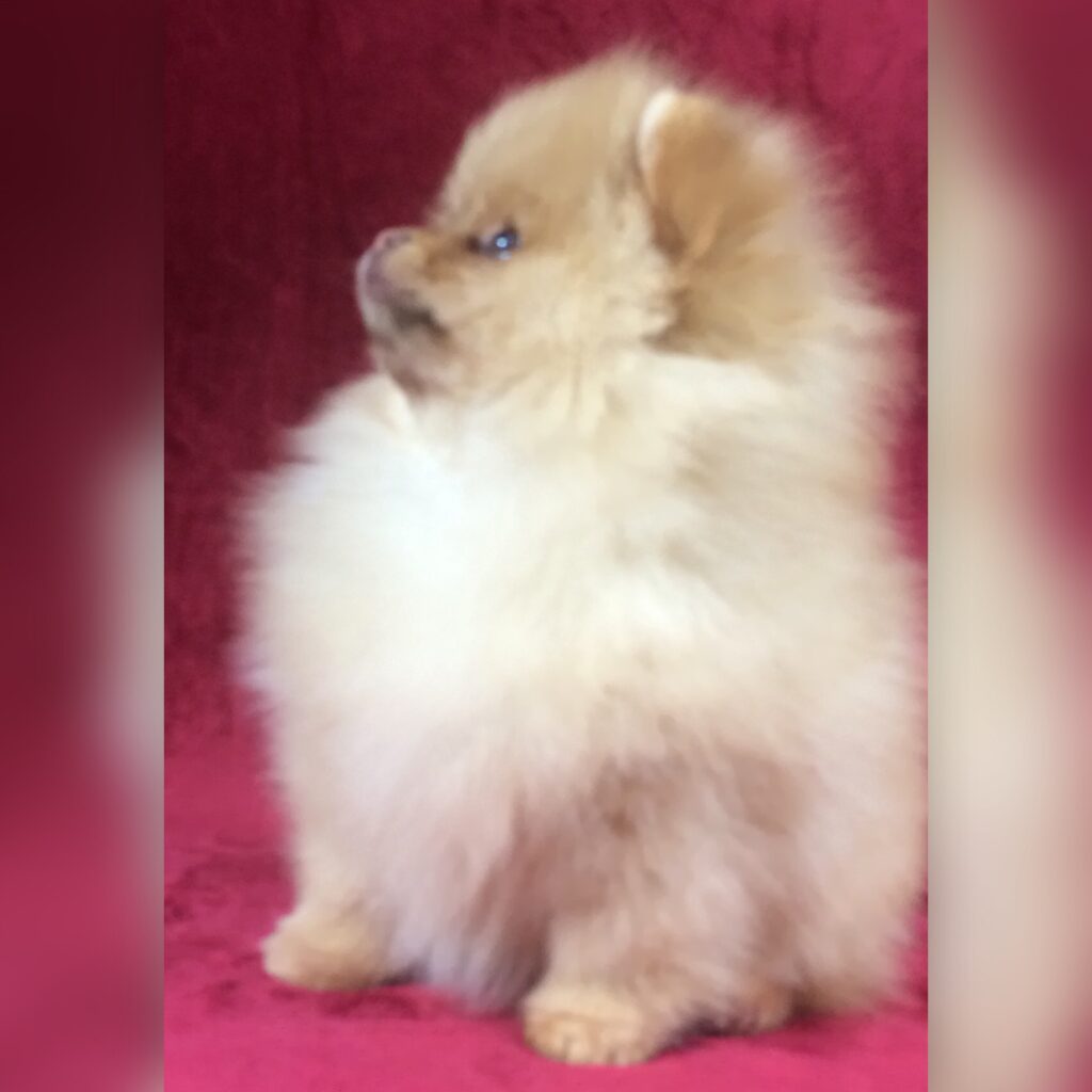 外産系血統にふさわしく十分な骨量で四肢健全、豊富な毛量のキラキラと輝く綺麗なオレンジ色の、ボールのように真ん丸でフワフワな男の子です。明るく穏やかで犬にも人にもフレンドリーな性格です。父親譲りのおちゃめな面と頑丈なボディと四肢でよく動く可愛い男の子です。ポメラニアンを初めて飼育されるご家族でも、またお子様の相棒としても、ちょうどよいサイズ感と頑丈さをもった子です。