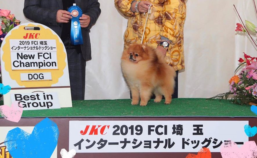 両親ともにJKCチャンピオンという正統派血統を持つ、スタンダードサイズのショータイプのポメラニアンです。父方は米国-タイ国ポメラニアンの血統を受け継ぎ、母方は英国-米国ポメラニアンの血統を受け継いた貴重な血統の組み合わせで生まれた子です。特に、母方祖父のINT.CH,JKC CH.ジュピターは、スペインAizens犬舎より迎えた、国内唯一となる英国チャンピオン直子です。貴重な血統であるため、当犬舎からの販売も極めて数が少なく、非常に希少な優良血統の男の子です。