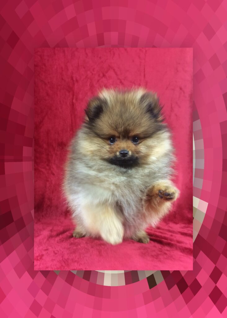 米国とタイ国の外産血統をもつ父親CH.ヒューペリオンと、クレイン・ケイの基礎犬INT.CH.ルナの直系孫娘レイアとの間に生まれたポメラニアン子犬(男の子)の販売紹介ページです。